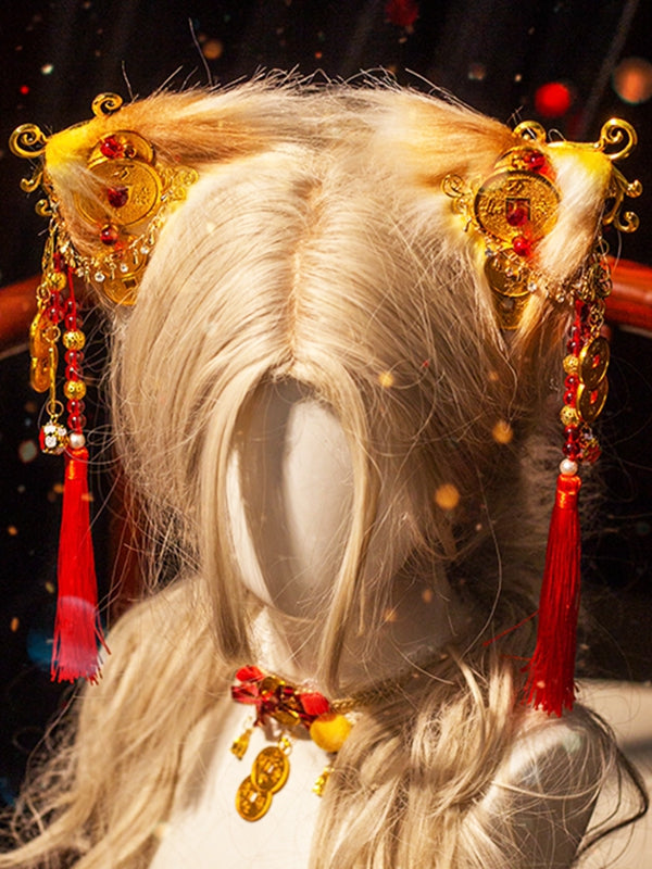 Gold Cheongsam Style Tassel Charm Cat Ear Hairclips