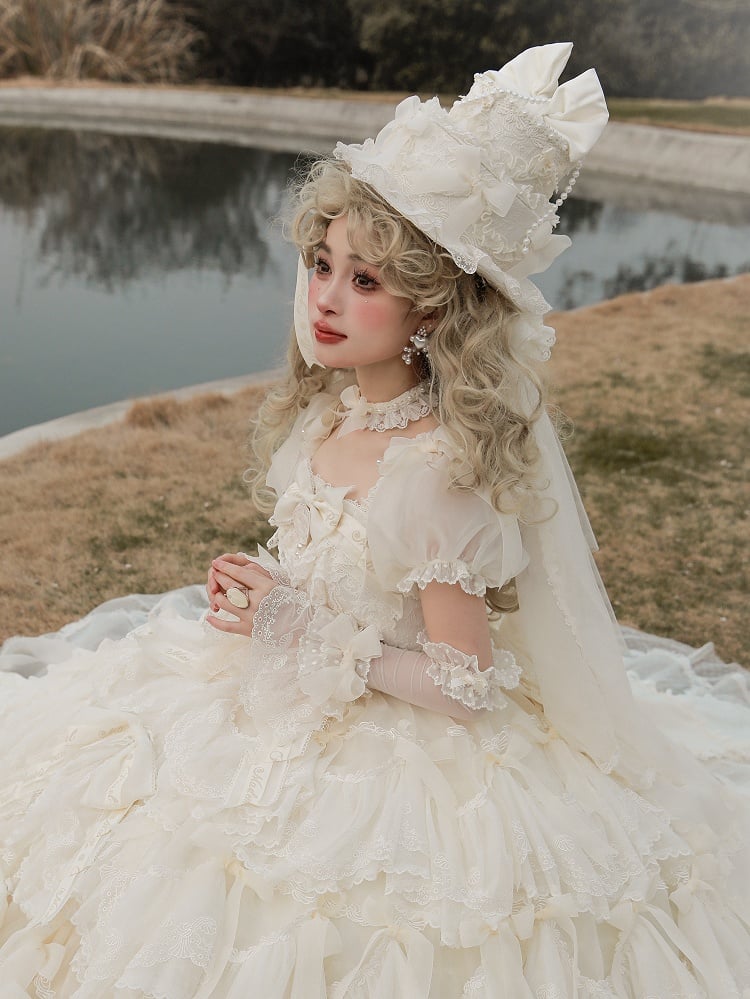 Gorgeous Creamy Bows and Beads Decorated Cake Hat