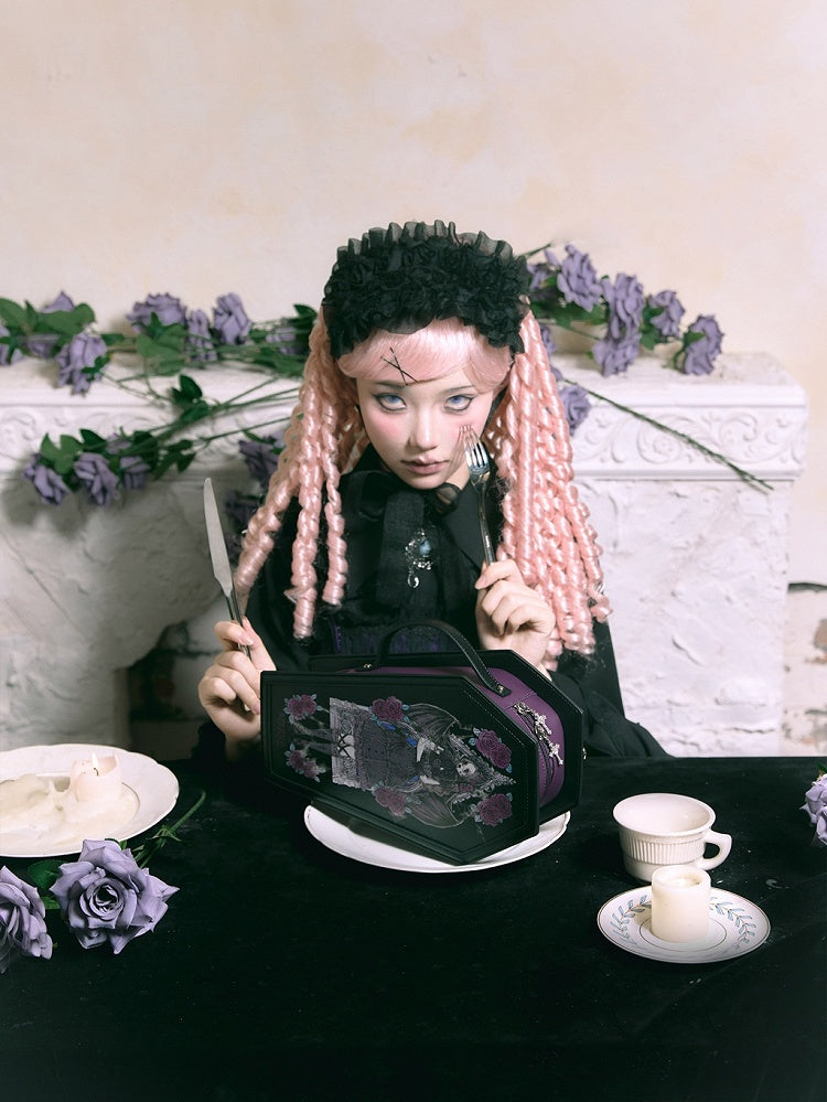 Step into the mysterious allure of gothic fashion with our uniquely designed Coffin-Shaped Bag. This eye-catching accessory features a distinct coffin silhouette, adding an intriguing edge to your ensemble. The bag is equipped with a cross-shaped zipper closure, combining functionality with a touch of spiritual symbolism. Adorning the exterior is a beautiful array of rose and artistic prints, enhancing its dark romantic aesthetic.Practicality meets style with the inclusion of a convenient side handle for easy carrying. Additionally, the bag comes with two adjustable straps, offering versatile carrying options. Whether you prefer a single shoulder sling or a traditional backpack style, this bag adapts to your preference effortlessly.Please note, the price includes one bag and two adjustable straps, giving you the ultimate flexibility in accessorizing your gothic or lolita-inspired outfits.