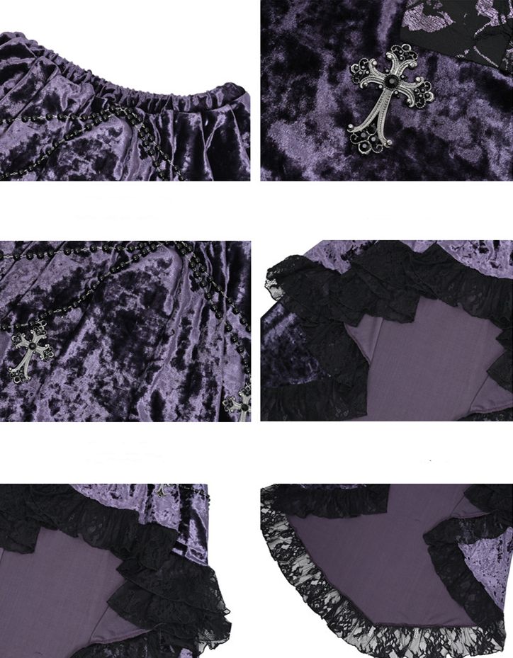 Gothic Cross Beaded Chains Purple Velvet High-low Skirt