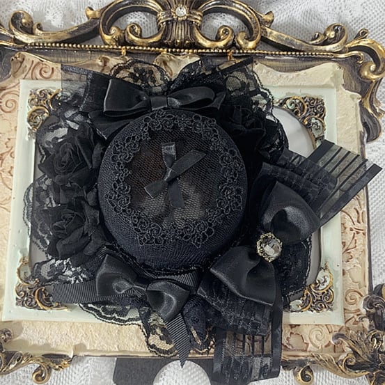 Gothic Elegant Floral Design Bowknots Mini Hat Black/Black and Red