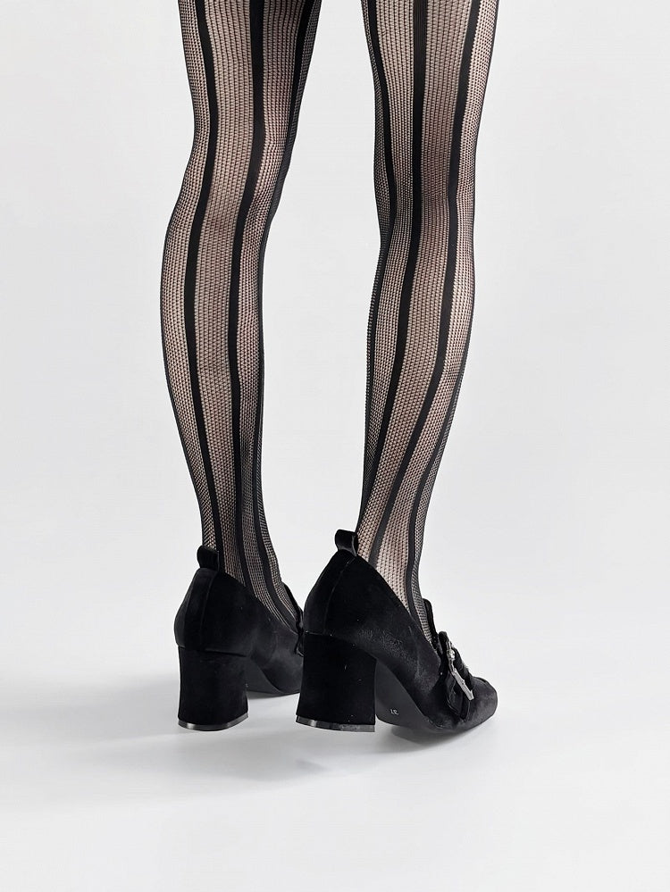 Step into the dark allure of Gothic fashion with these striking black square-toe chunky heels.