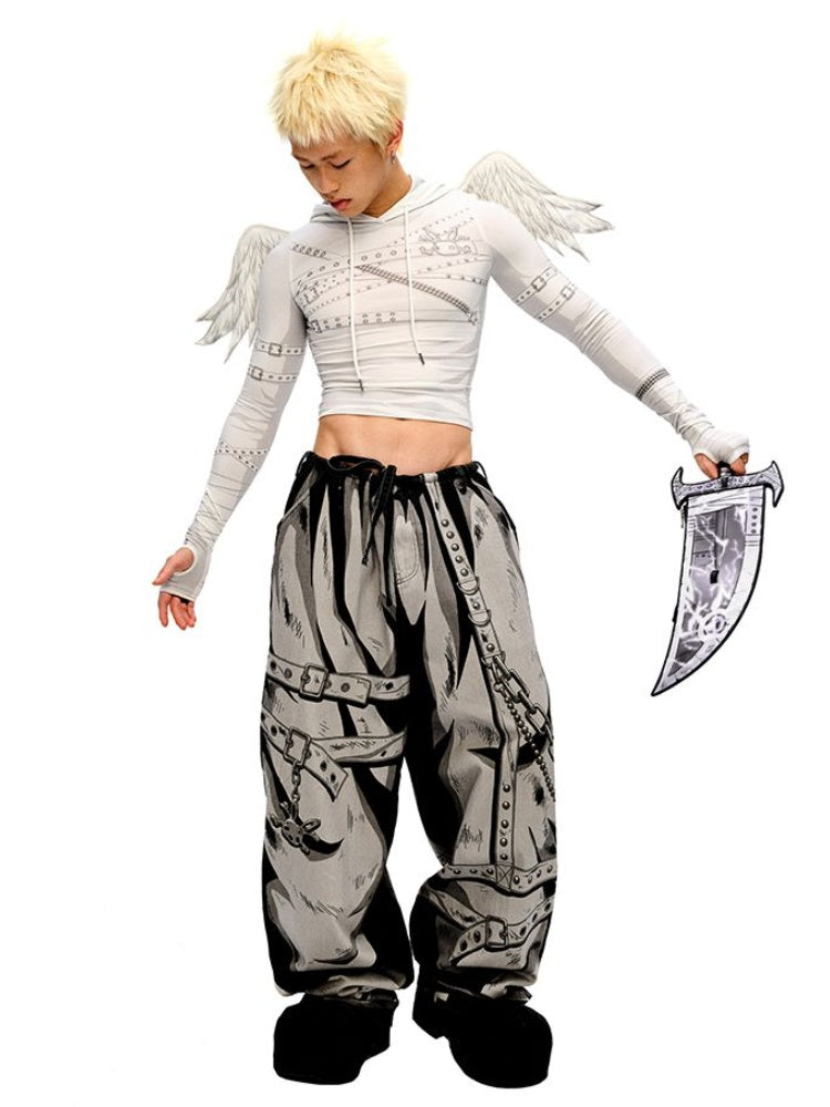 Gray Cartoon Lightning Knife-Shaped PU Crossbody