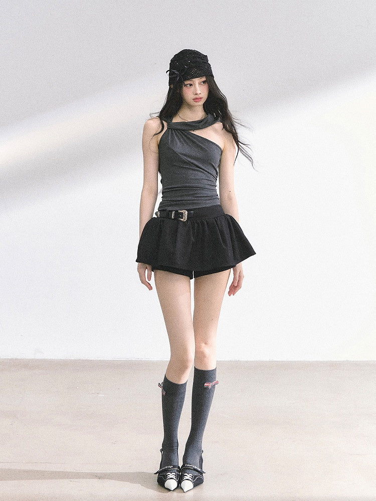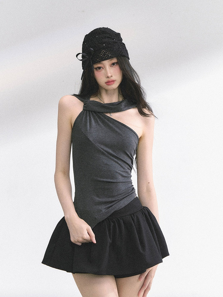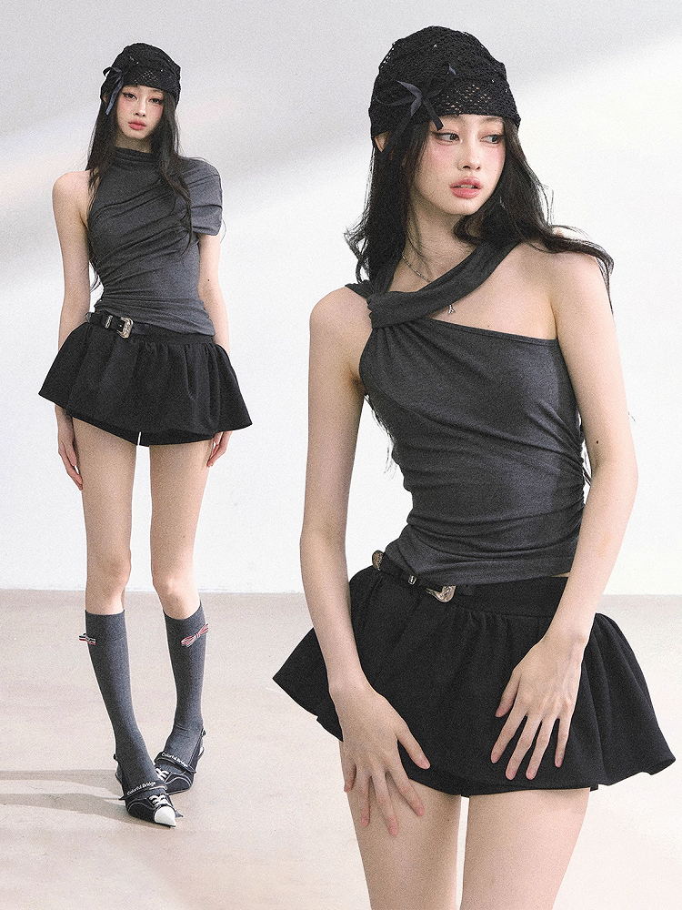 Embrace style and versatility with this sleek grey slim-fitting t-shirt. Designed for the modern individual, this piece offers two distinct ways to wear, allowing you to effortlessly transition from casual to chic.