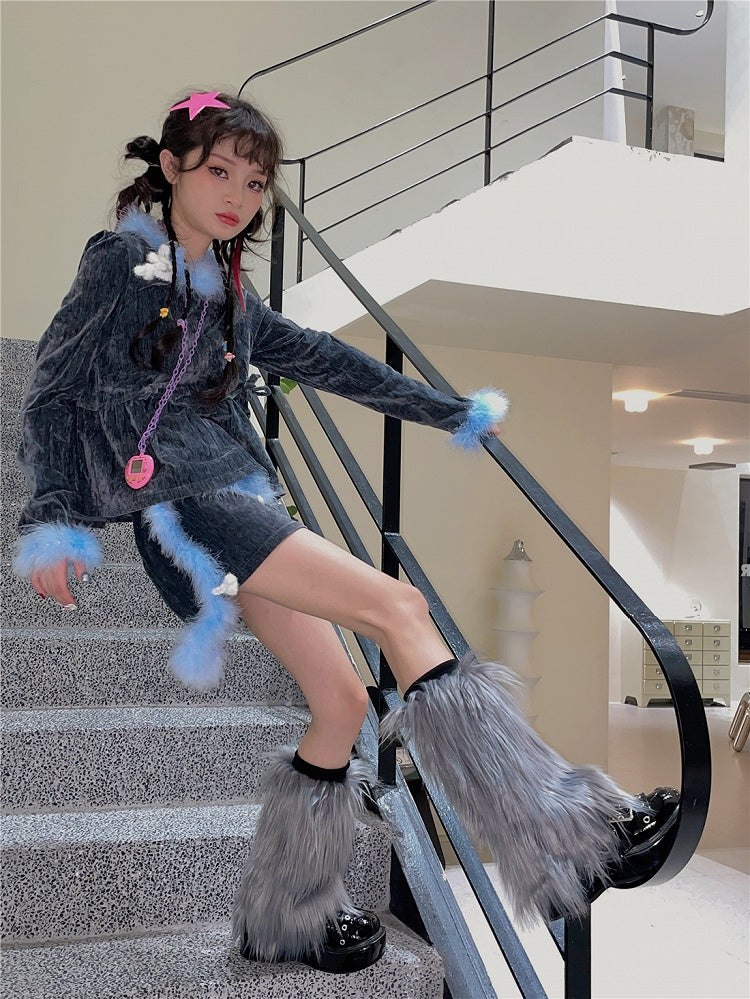 Gray Y2K 20CM/30CM Shaggy Leg Warmers