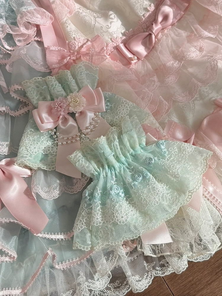 Green&Pink Floral Design Beaded Charm Bowknot Wrist Cuffs