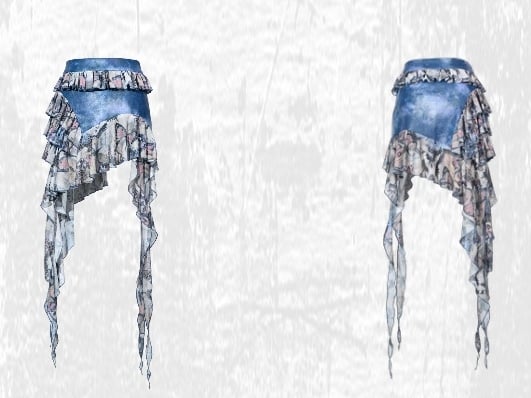 Inspired by the serene and mysterious blue of the Morpho butterfly, this skirt embodies the essence of a mystical fairy. The dreamlike quality of this butterfly-inspired skirt is crafted with intricate, multi-layered, and irregular designs, exhibiting meticulous craftsmanship. Its cascading, ethereal layers flutter with every step, creating a whimsical dance in the wind, reminiscent of a butterfly spirit gracing the earth. Perfect for rocking your style at music festivals, this piece merges the enchanting allure of a fairy with the edgy vibe of grunge, making it a standout choice for those seeking a unique and captivating look.
