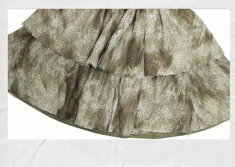 Halter Neck Light Green Basque Waist Forest Fairy Tie-dyed Dress