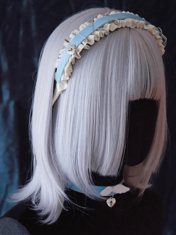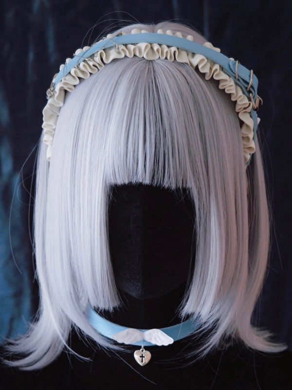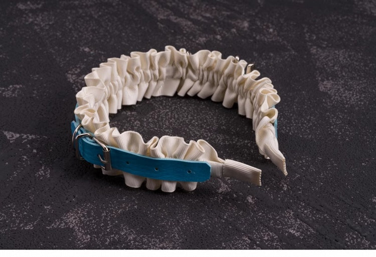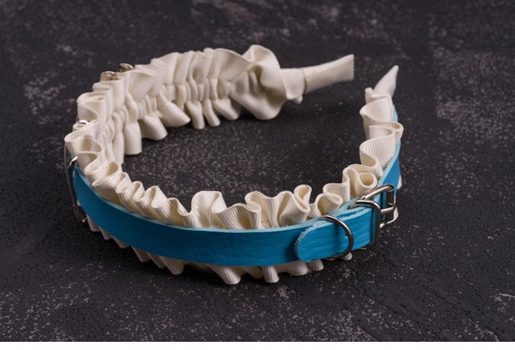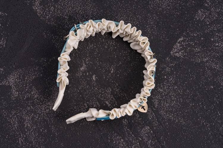 Heart Charm Blue and White PU Buckle Ruffled KC