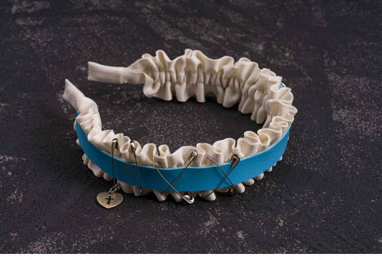 This adorable KC features a heart-shaped charm and ruffled design in blue and white, perfect for adding a pop of color and fun to your look. The PU buckle adds a stylish touch, while the included pins allow for customization and personalization.