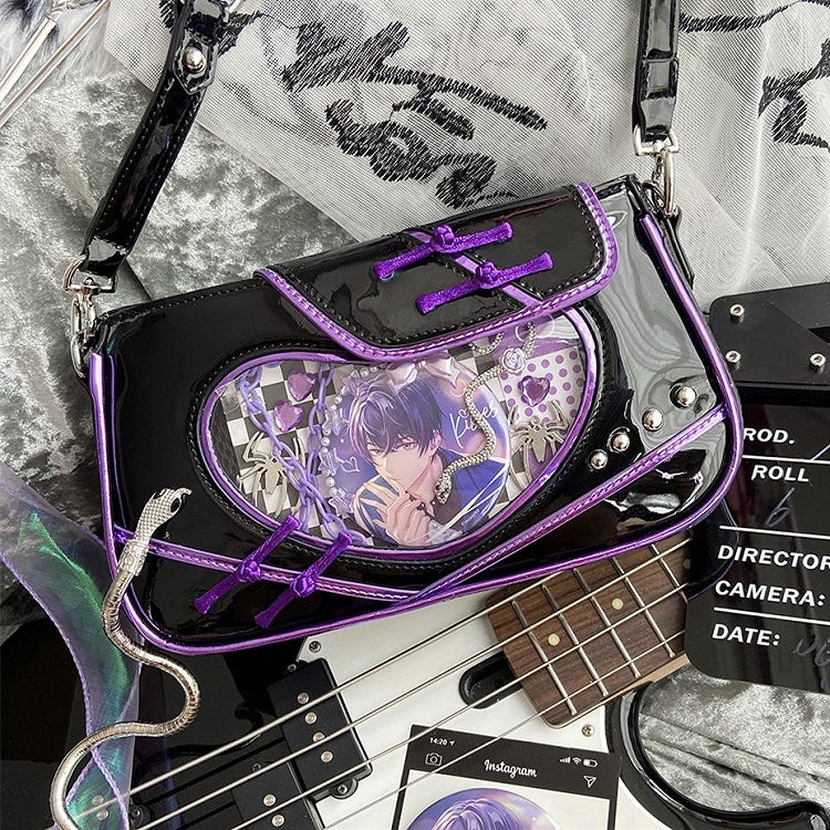 Heart Window Black and Purple Ita Shoulder Bag Knot Buttons Design