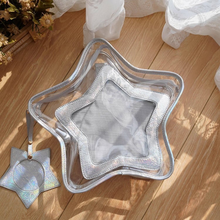 Holographic Color PU Star-shaped Ita Bag Set with Detachable Badge Charm