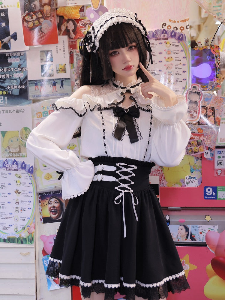Jirai Kei Open Shoulders Long Sleeves White Blouse Best Seller
