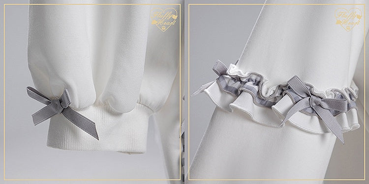 Dive into the world of Jirai Kei fashion with this charming Sailor Collar Sweatshirt. Featuring delicate dusty blue plaid ruffles and elegant bow decoration, this piece effortlessly blends playful and sophisticated elements. The addition of a free tie completes the look, making it a versatile choice for any kawaii wardrobe.