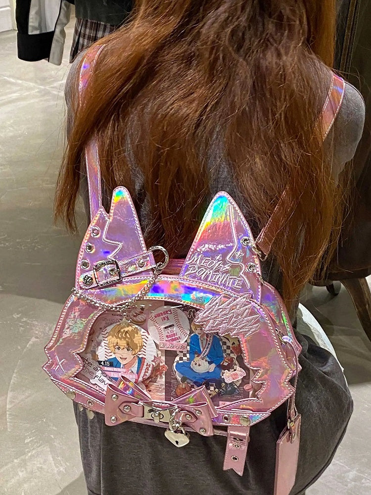 Charming Kitty Ear Design: The standout feature of this tote bag is its cute kitty ears, adding a touch of whimsy and fun to your outfit. It's a perfect nod to kawaii fashion, making it a delightful addition to your wardrobe.