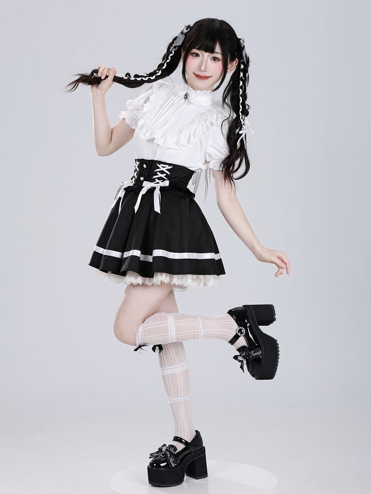 Add a touch of angelic charm to your wardrobe with this stunning white blouse featuring a beautiful pair of lace angel wings at the back. The short puff sleeves and partial button placket add a sweet and playful touch, while the free bowtie completes the look with effortless elegance.