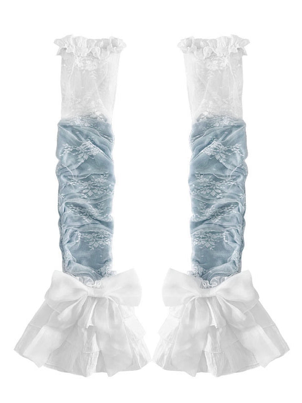 Lace Details Pink/Blue Bowknot Leg Sleeves with Tiered Cuffs