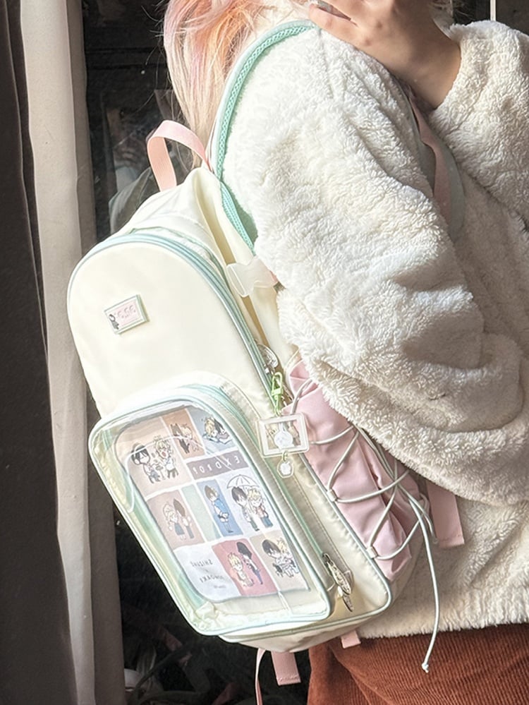 Macaroon Star Print Backpack Ita Bag With Goggles-Shaped Ita Bag