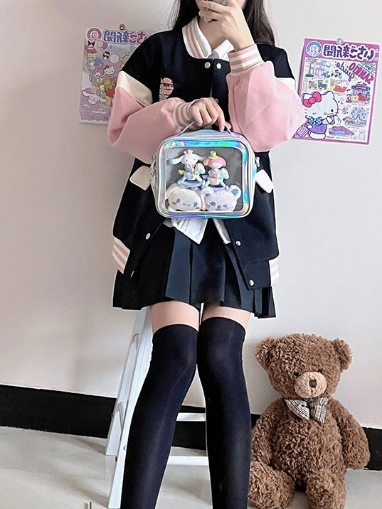 Metallic Black/White/Silver PU Square Crossbody Ita Bag