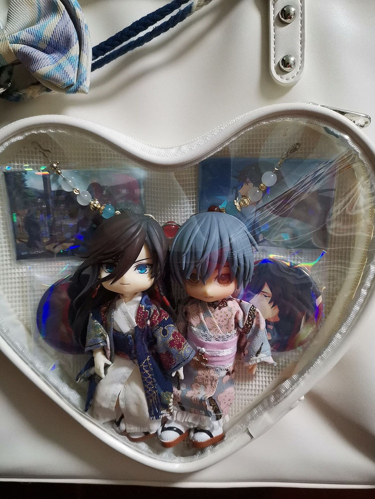 Milk White/Black Heart-shaped Window Square PU Tote Ita Bag