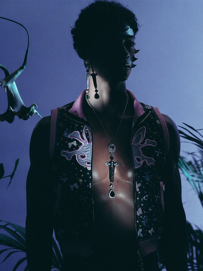 Elevate your accessory game with this stunning necklace, featuring a silver sword charm adorned with vibrant multicolor rhinestones. This eye-catching piece combines elegance and edge, making it the perfect statement accessory for any outfit.