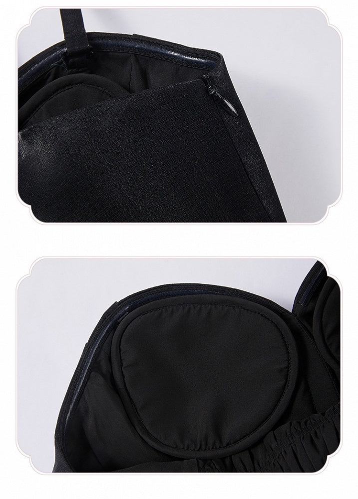 The back is equipped with elastic and lace-up adjustments, ensuring a comfortable and perfect fit. For added versatility, the detachable shoulder straps allow you to customize your look. This dress comes with both matching fabric and transparent straps, offering you multiple styling options. The built-in anti-slip strip and padded bustier provide added support and comfort, making it suitable for a variety of occasions.