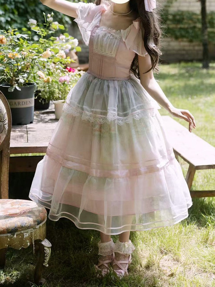 Embrace the elegance of nature with this Water Lily Print Square Neckline Lolita Dress. This enchanting piece features a delicate water lily motif that captures the serene beauty of a pond in bloom. The square neckline adds a touch of classic Lolita charm, perfect for showcasing a statement necklace or a delicate lace choker.