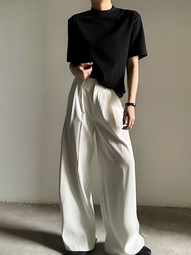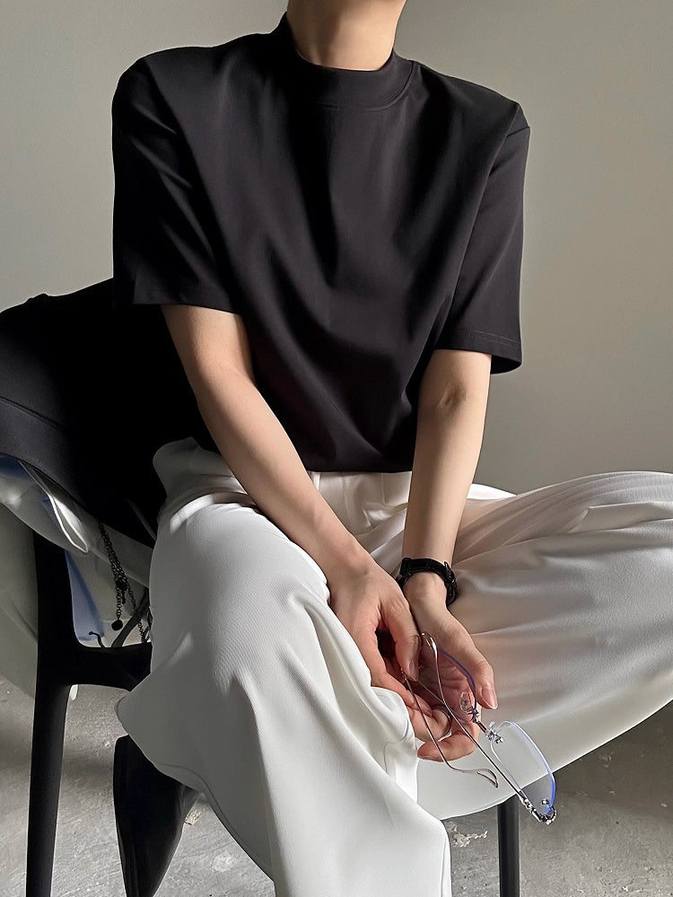 Unisex Relaxed Fit Short Sleeve Tee with a Minimalist Design and Mock Neck.