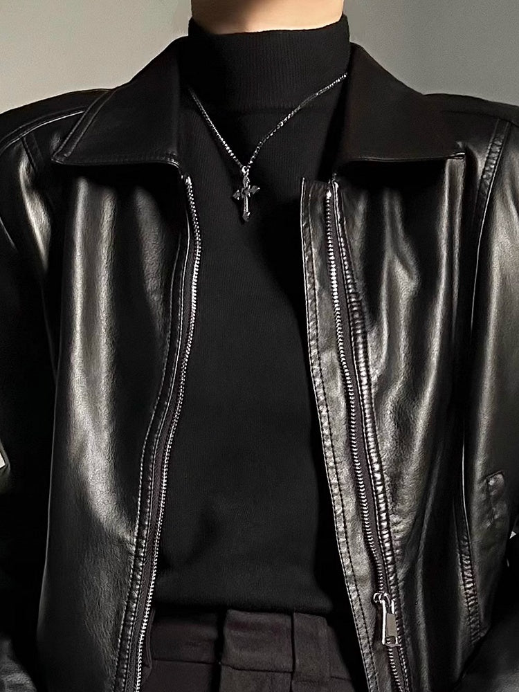 Ouji Lolita Black Unisex Slim Fit Long-Sleeve Turtleneck Sweater