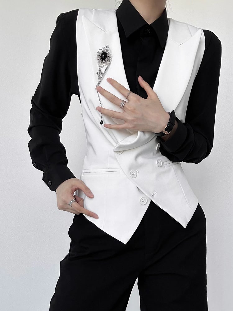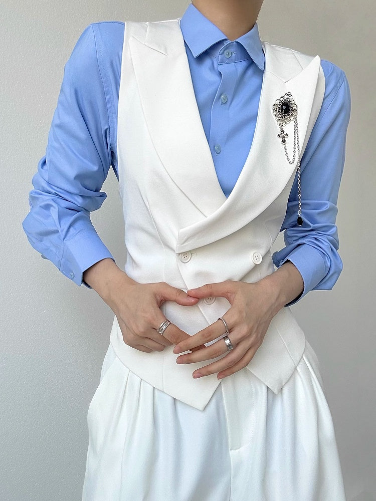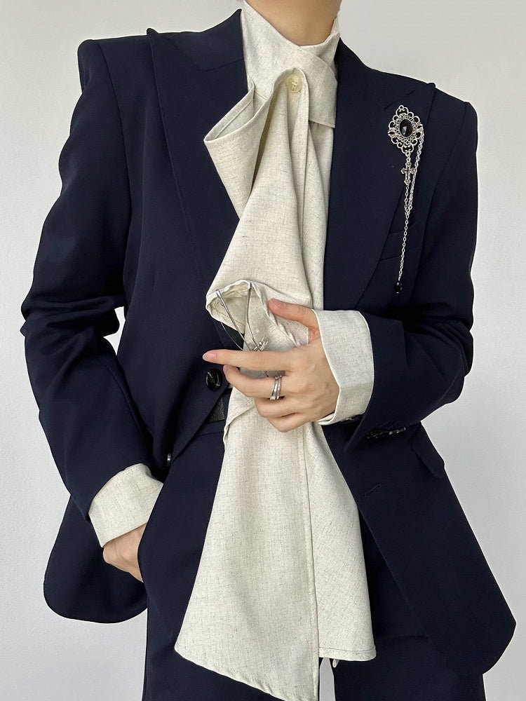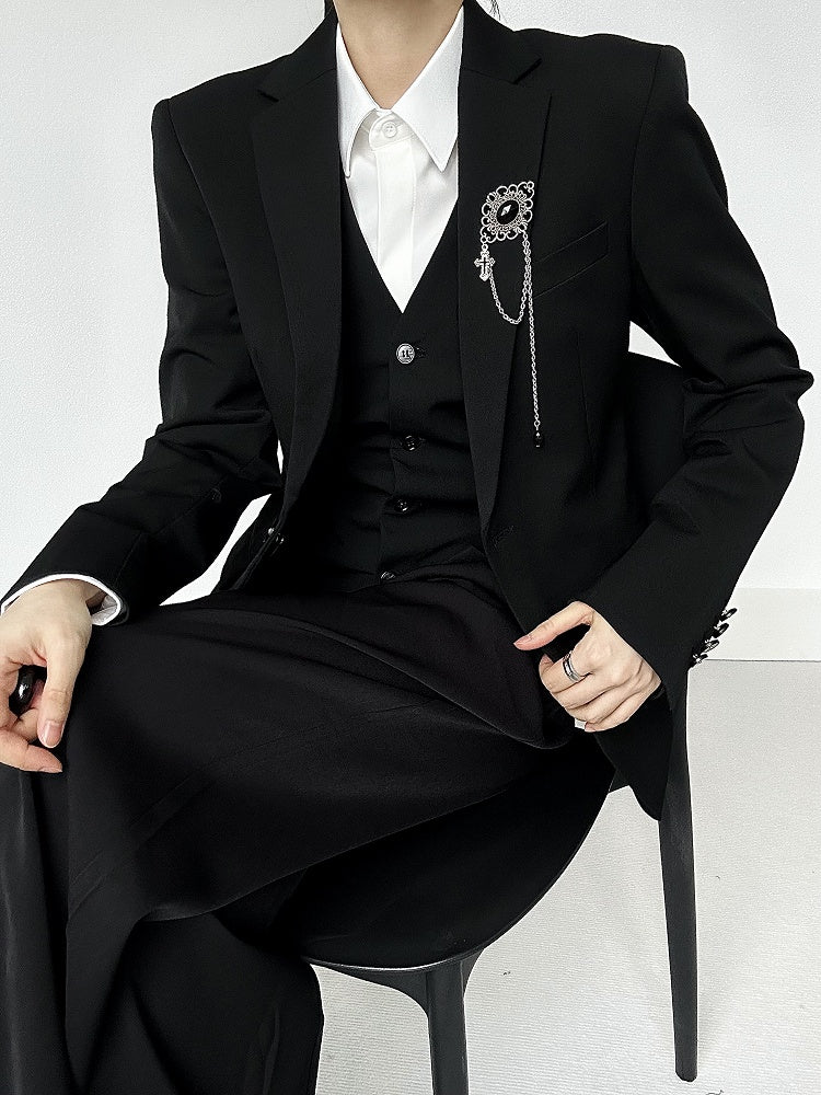 Ouji Lolita Silver Vintage Brooch with Black Obsidian Stone & Cross Charm