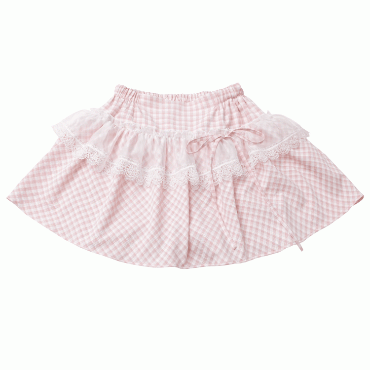 Pink/Baby Blue Plaid Lace Trim Skirt