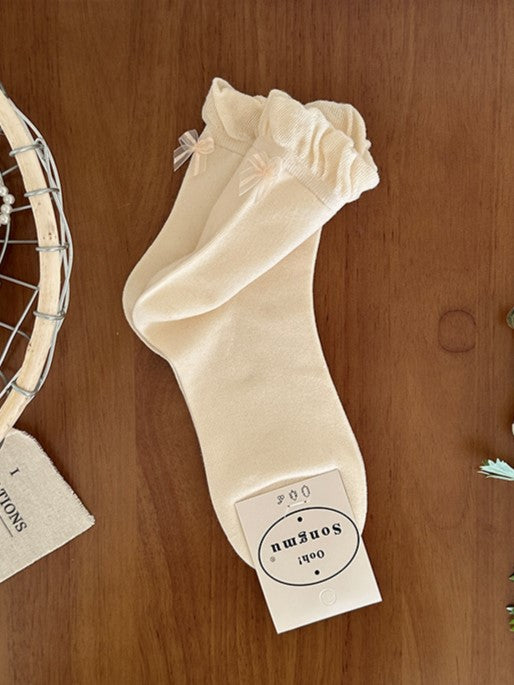 Pink/Blue/Black/White/Yellow/Gray Bowknot Details Ruffled Cuff Calf Socks