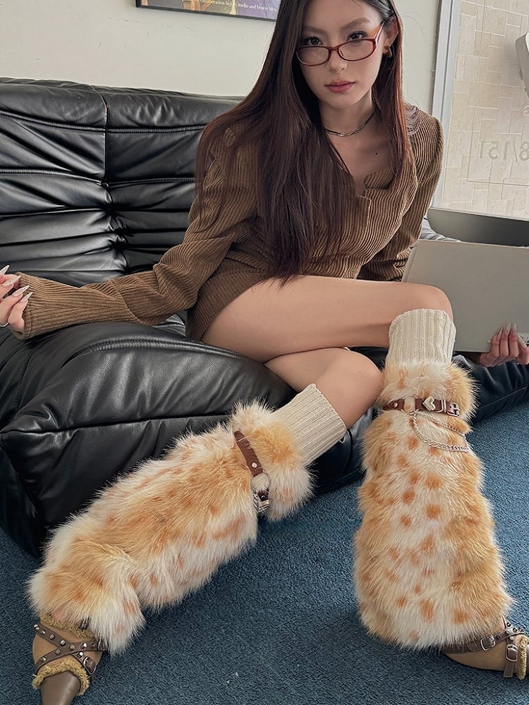Embrace a cozy yet edgy style with these shaggy leg warmers. Featuring adjustable buckle straps, they offer a perfect fit while adding a touch of rebellious flair to your outfit.