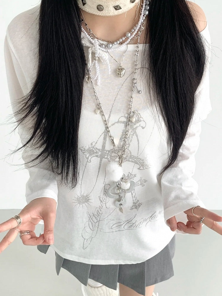 Pink/Silver Y2K Musical Note With Heart Charm Necklace