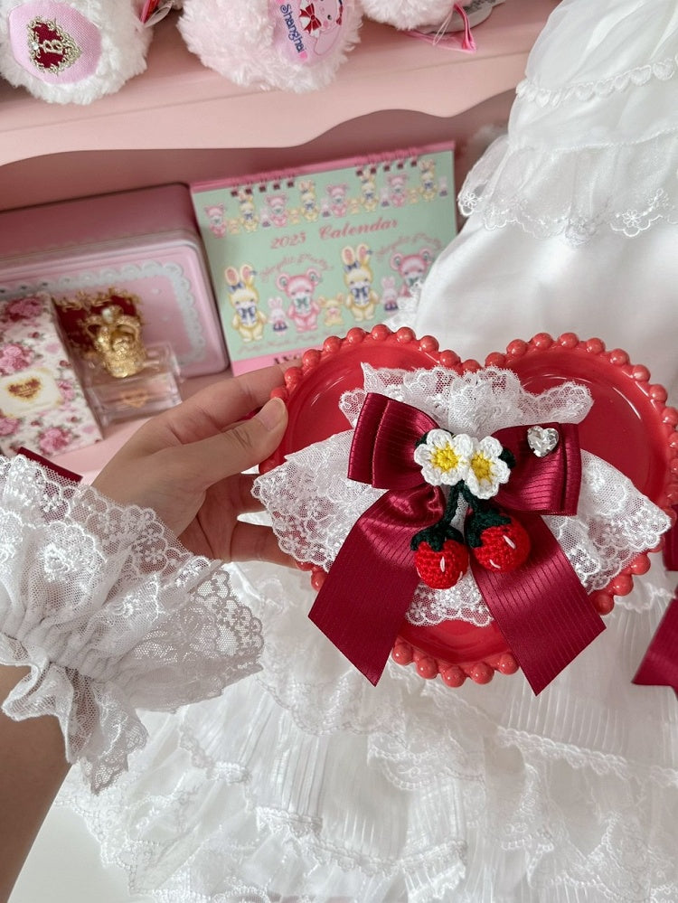 Pink/Wine Red Rhinestone Decorated Striped Pattern Bowknot Wrist Cuffs