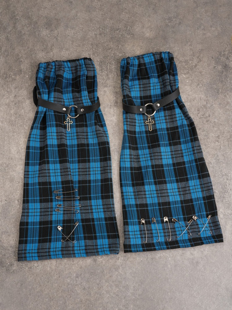 Pins Decorated Black and Blue Plaid Leg Sleeves