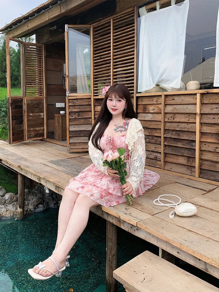 Embrace your inner romantic with this enchanting plus size dress, featuring a delicate rose print that blooms across a soft pink canvas. The Basque waist design accentuates your curves beautifully, offering a flattering silhouette that exudes elegance and grace. Perfect for both casual outings and special occasions, this dress combines comfort with style, making it a must-have addition to your wardrobe.