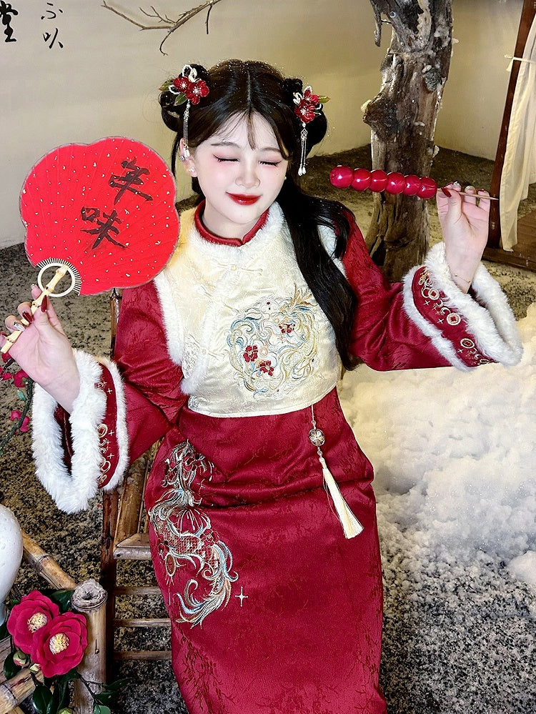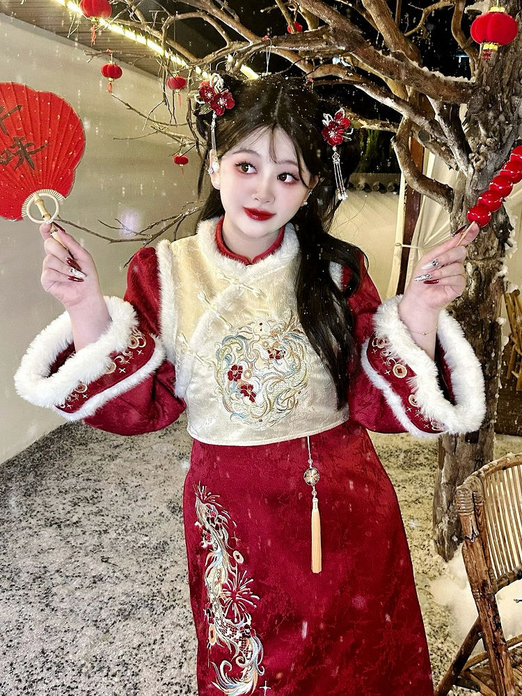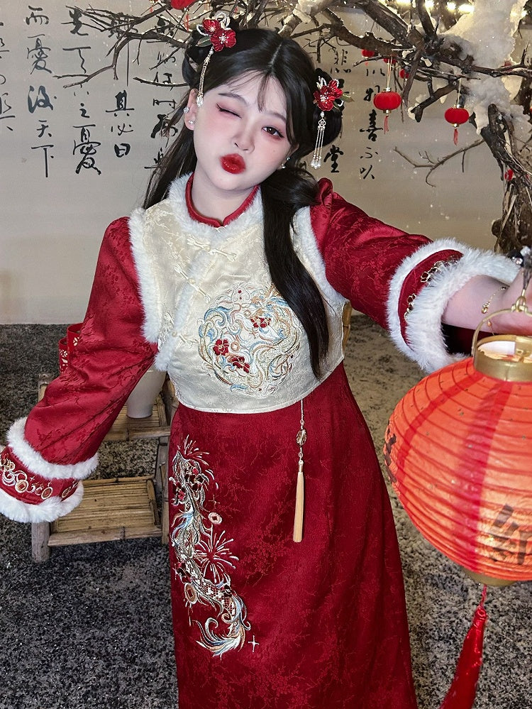 Plus Size Beige Dragon Embroidery New Year Vest