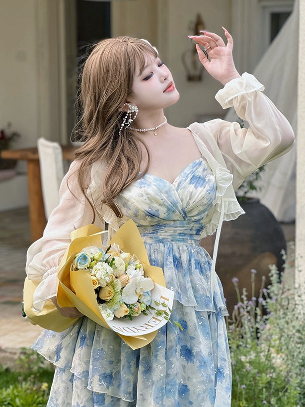 Stay cool and stylish in this lightweight beige cropped top featuring delicate ruffle trim and long sleeves. Ideal for pairing with high-waisted bottoms for a cute and trendy look.