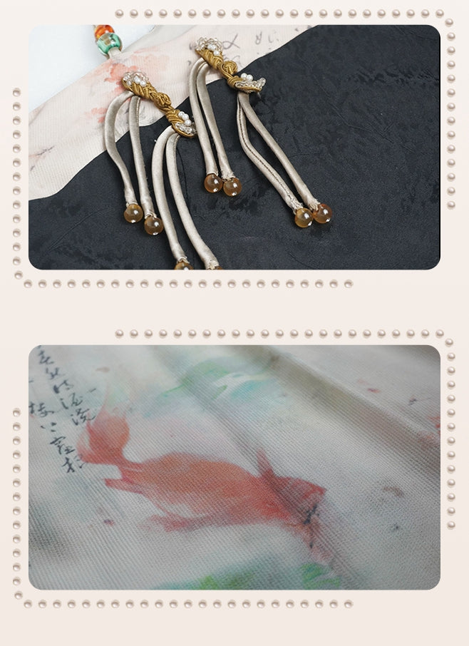 Plus Size Black and White Sleeveless Qipao Dress Side Slit
