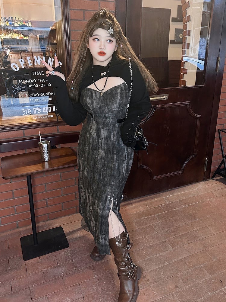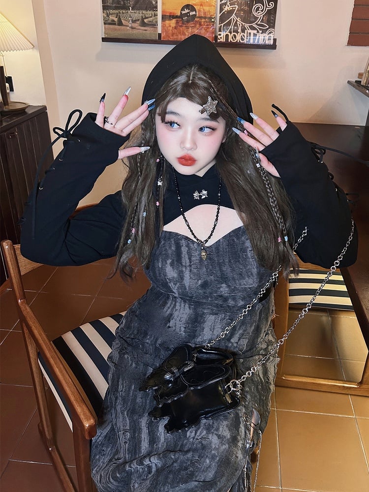 Plus Size Black Lace-up Detail Hooded Bolero