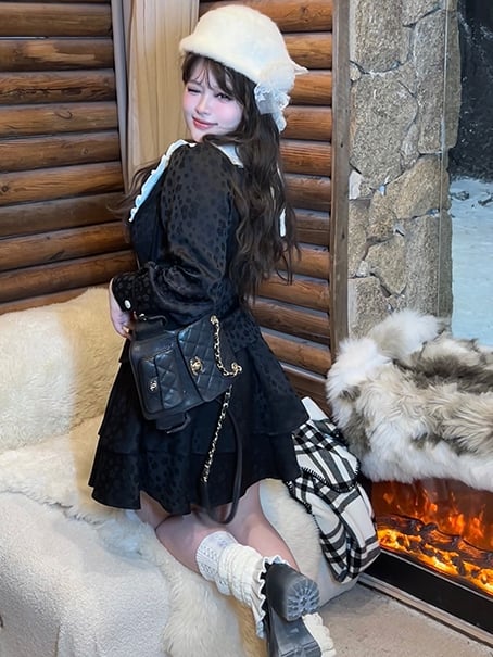 Unveil your sophisticated charm with this exquisite black jacquard blouse. Featuring a flattering V-neckline and a delicate peter pan collar adorned with a circle of ruffle trim, this top is a perfect blend of elegance and playfulness. The button-down front adds a classic touch, while the cleverly designed silhouette cinches at the waist to accentuate your curves, offering a slimming effect that complements plus sizes beautifully. Ideal for both casual and formal occasions, this blouse is a versatile addition to your fashion-forward wardrobe.