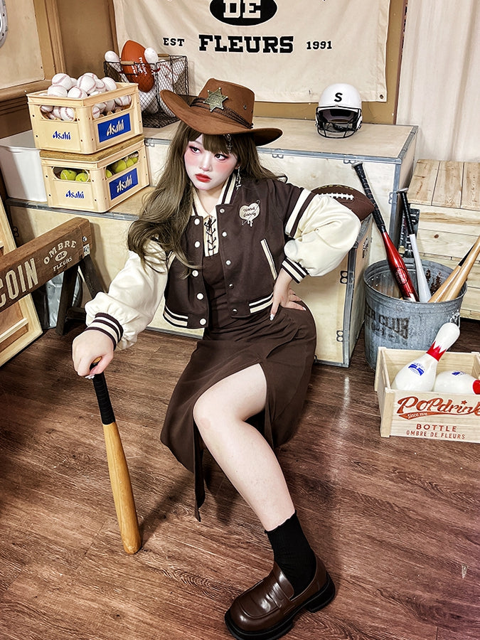 Plus Size - Dark Brown Cropped Baseball Jacket