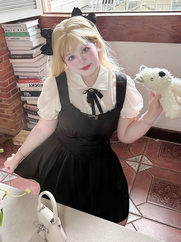 Plus Size Friendly Black Basque Waist Overalls/Lace Cuffs Bloomers