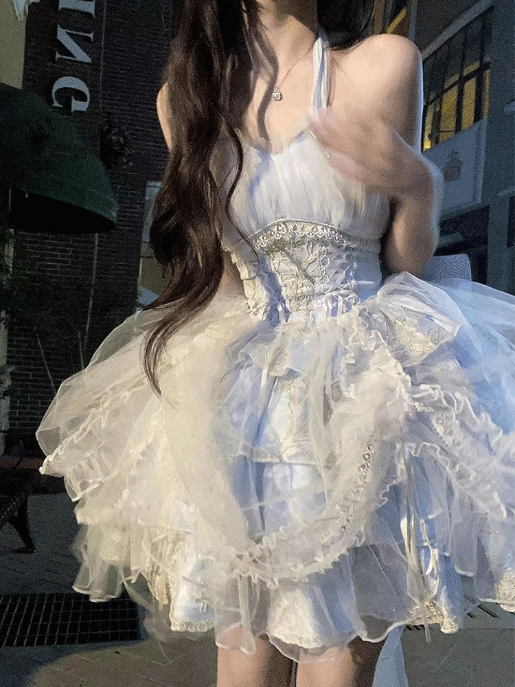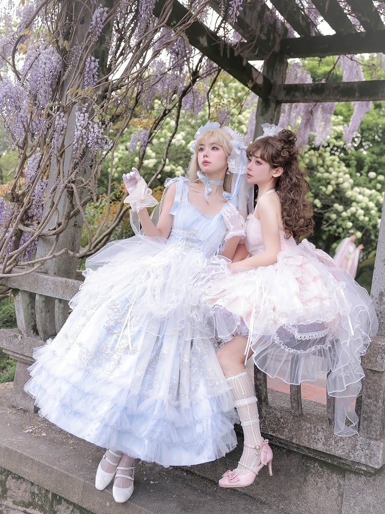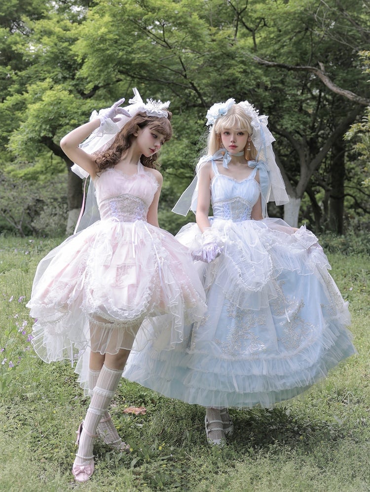 Plus Size Friendly Blue Tiered Ruffle Skirt Hime Jumper Skirt