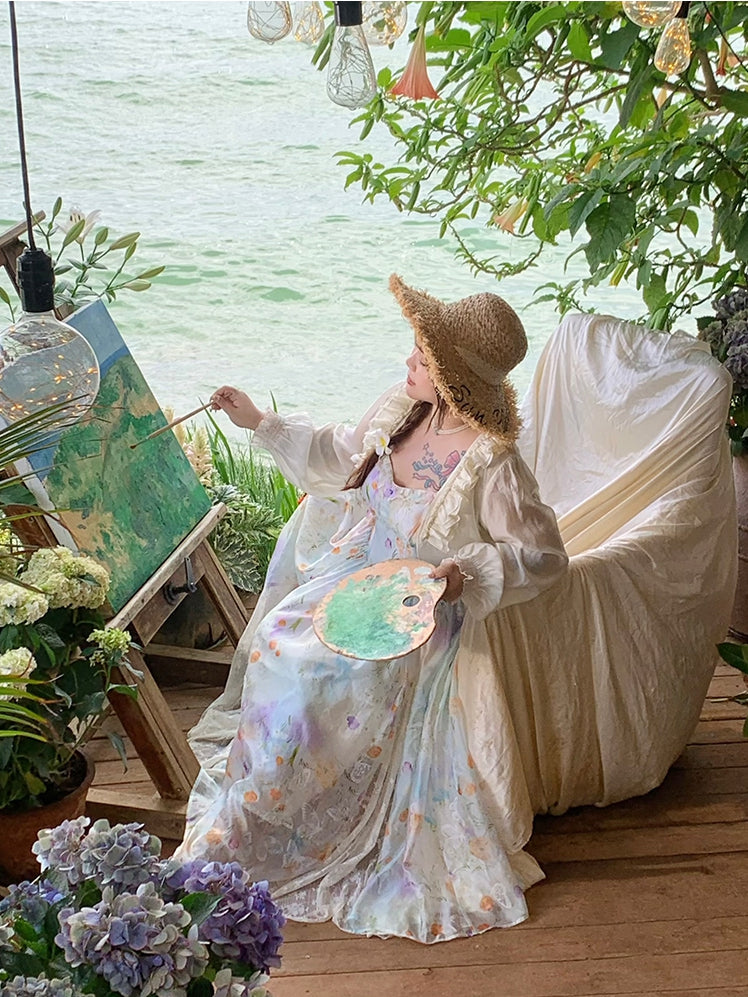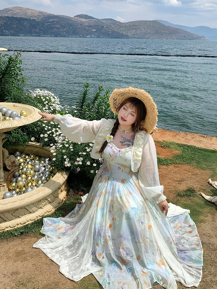 Embrace the perfect blend of artistic elegance and comfort with our Plus Size Lace Patches Hem Oil Painting Print Cami Dress. This stunning piece features a captivating oil painting print that evokes a sense of timeless beauty and sophistication. The delicate lace patches at the hem add a touch of romance and femininity, making this dress a standout choice for any occasion.