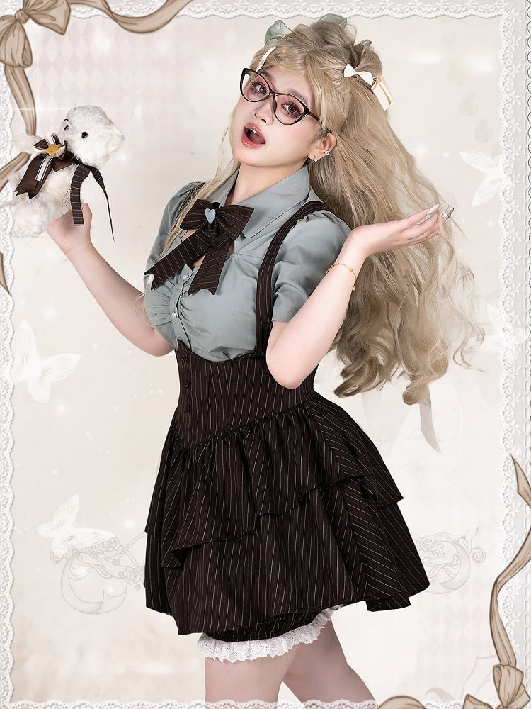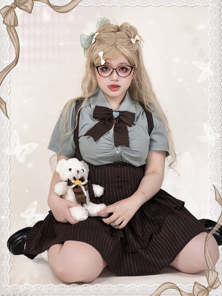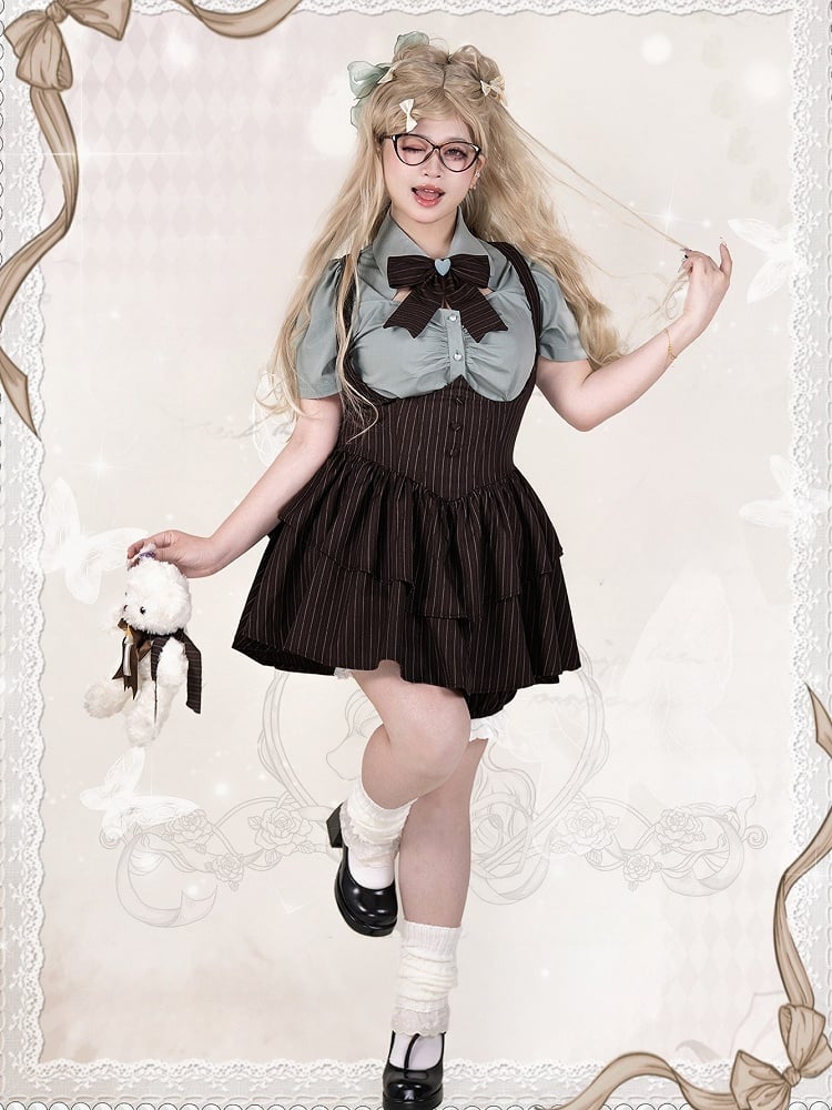 Elevate your Kawaii wardrobe with our plus-size mint blue heart buttons short-sleeve blouse. This adorable blouse features charming heart-shaped buttons and delicate cutout details, adding a touch of sweetness to your outfit. The mint blue color is refreshing and perfect for the upcoming season. The short sleeves provide a comfortable fit. Pair it with your favorite bottoms for a lovely and stylish look.