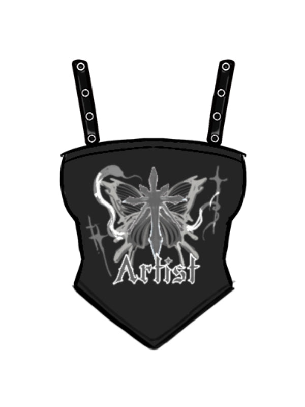 Plus Size Y2K Butterfly Print Black/White Cami Top