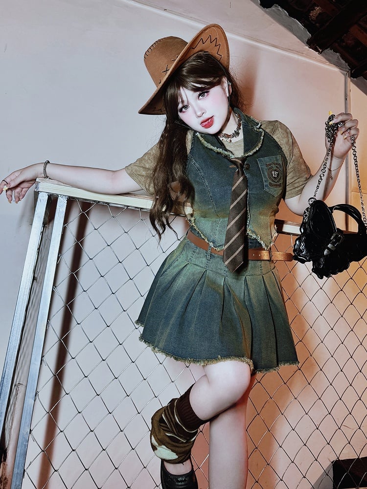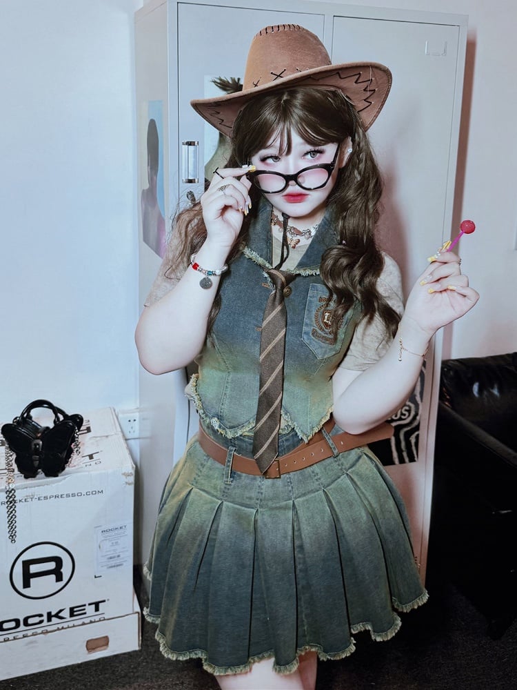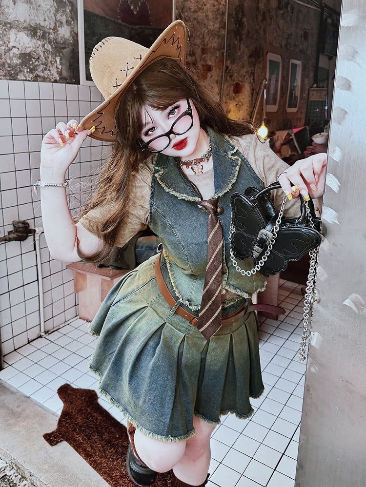 Plus Size Y2K Faded Wash Blue Denim Vest