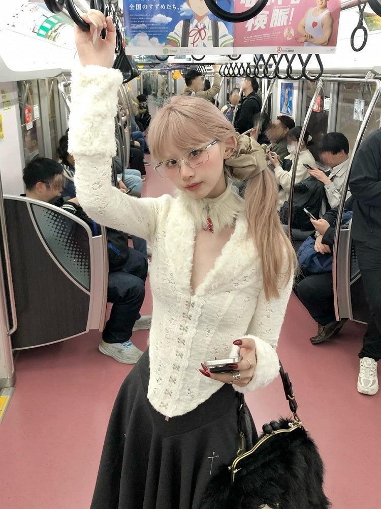 This plush beige choker features a cross pendant with blood drip design. Soft fuzzy texture blends gothic edge with kawaii charm. Adjustable fit ensures all-day wearing comfort. Makes a bold yet delicate fashion statement. Transitions seamlessly from day to night wear.